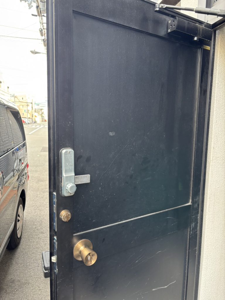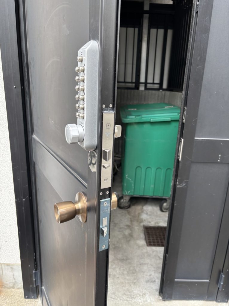 今回は賃貸マンションにてゴミ庫に付いている電子錠から、自動施錠錠に対応したキーレックスへ交換設置を行った事例をご紹介します。