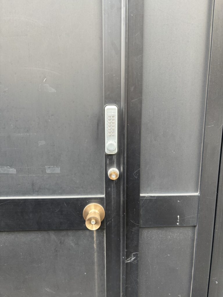 今回のドアは軒がありませんでしたが、キーレックスは完全メカニカルな番号錠の為、雨が掛かるような場所へも安心して設置可能です。
