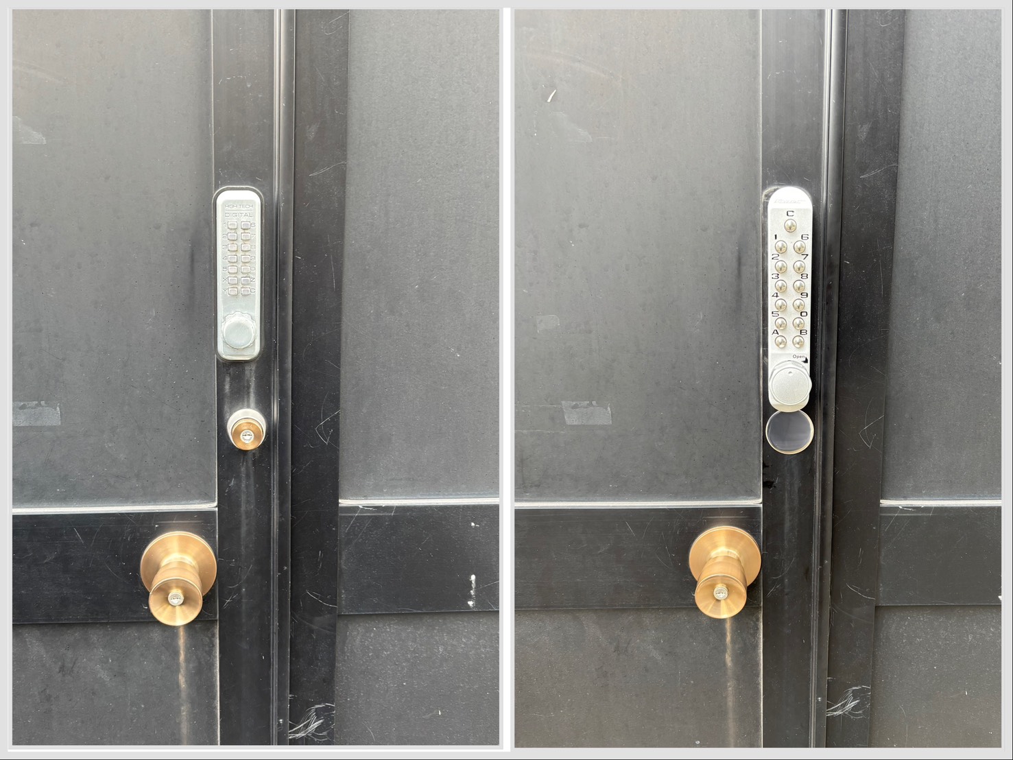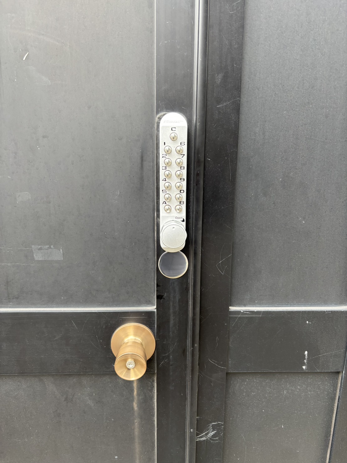今回のドアは軒がありませんでしたが、キーレックスは完全メカニカルな番号錠の為、雨が掛かるような場所へも安心して設置可能です。