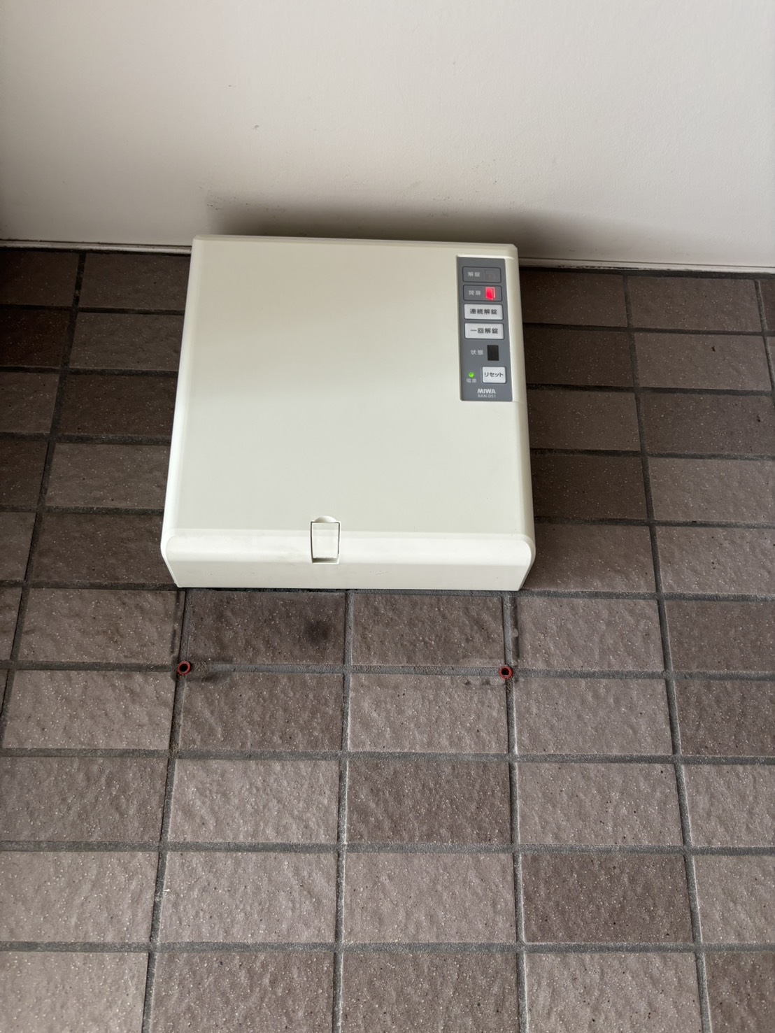 現行品は制御盤のフタに連続解錠用のボタンが搭載されていますので、引っ越し業者などが開けっ放しにしたい場合はそちらで操作することも可能です。