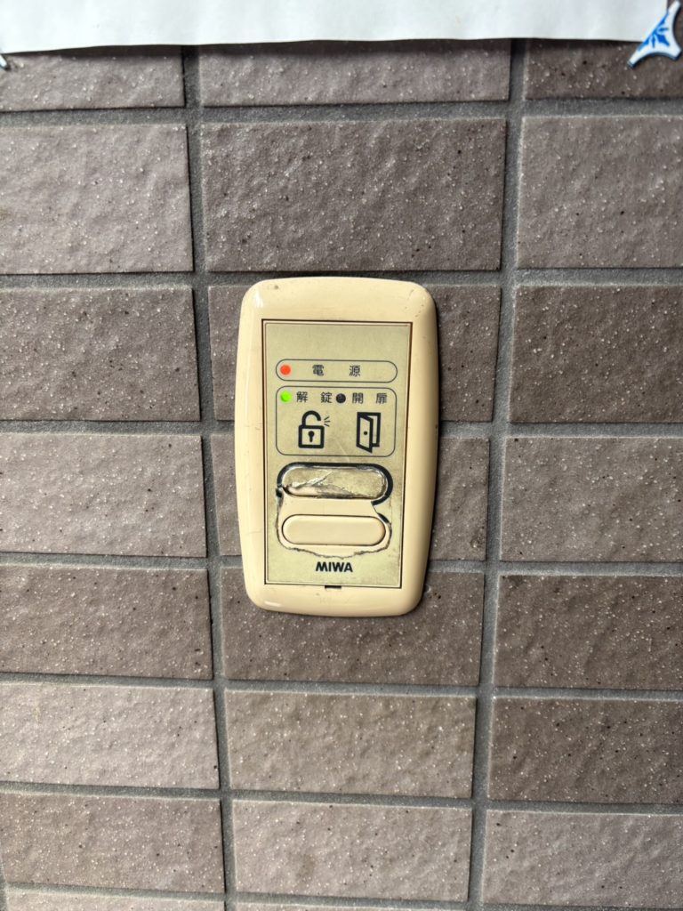 また、解錠ボタンは、施工前の物は「連続解錠」(開けっ放し機能)が操作できる2ボタンタイプの物でしたが、入居者によって勝手に使われにくくするために、解錠ボタンは1回解錠のみの1ボタンタイプに変更しました。