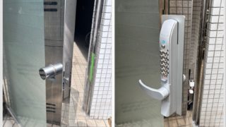 シェアスペース入口にキーレックスを新規設置した事例をご紹介。様々な方が出入りする施設への設置などには、電池交換不要で暗証番号での解錠に対応しているキーレックスが最適です。お気軽にご相談ください。